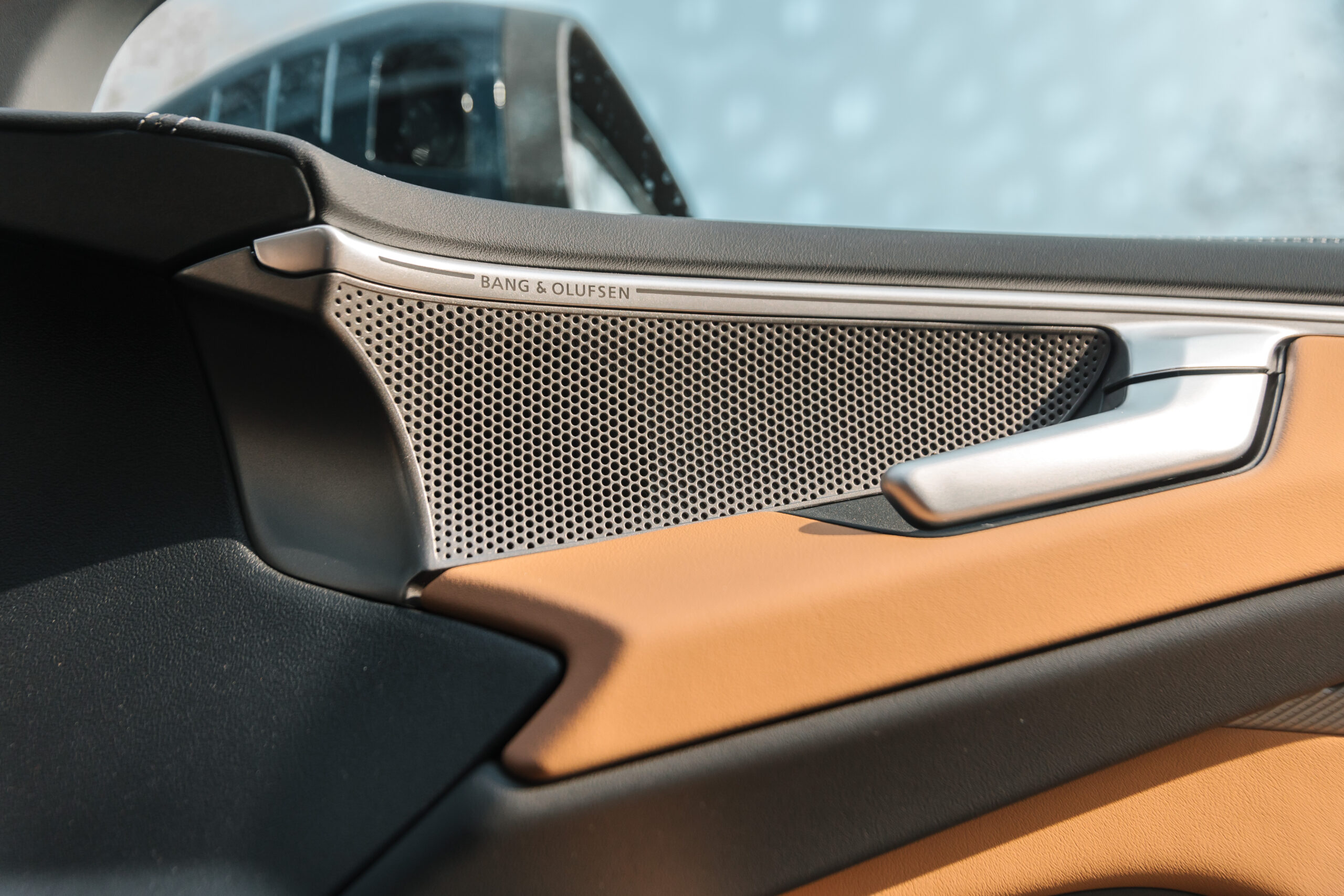 Ambietné osvetlenie pozdĺž palubnej dosky a výplní dverí plní estetickú funkciu a pomocou farebného potenciometra si viete navoliť odtieň prislúchajúci práve vašej nálade v konkrétnej situácií a jazde. Krajné segmenty na palubnej dosky navyše dynamicky signalizujú zapnuté smerovky. Osvetlenie tu pôsobí naozaj nenútene. Je dokonale integrované s hliníkovým dekorom. Vo dverách je vygravírované logo Bang & Olufsen, ktoré je taktiež súčasťou ambientu. Ako som spomínal, Audi pracuje s najmenšími detailami. Zmenu teploty vzduchu vháňaného do interiéru indikujú aj logá audiosystému. Pri zvýšení teploty zasvietia na červeno, pri znížení na modro. Drobnosť, ktorá pôsobia naozaj exkluzívne a premyslene.