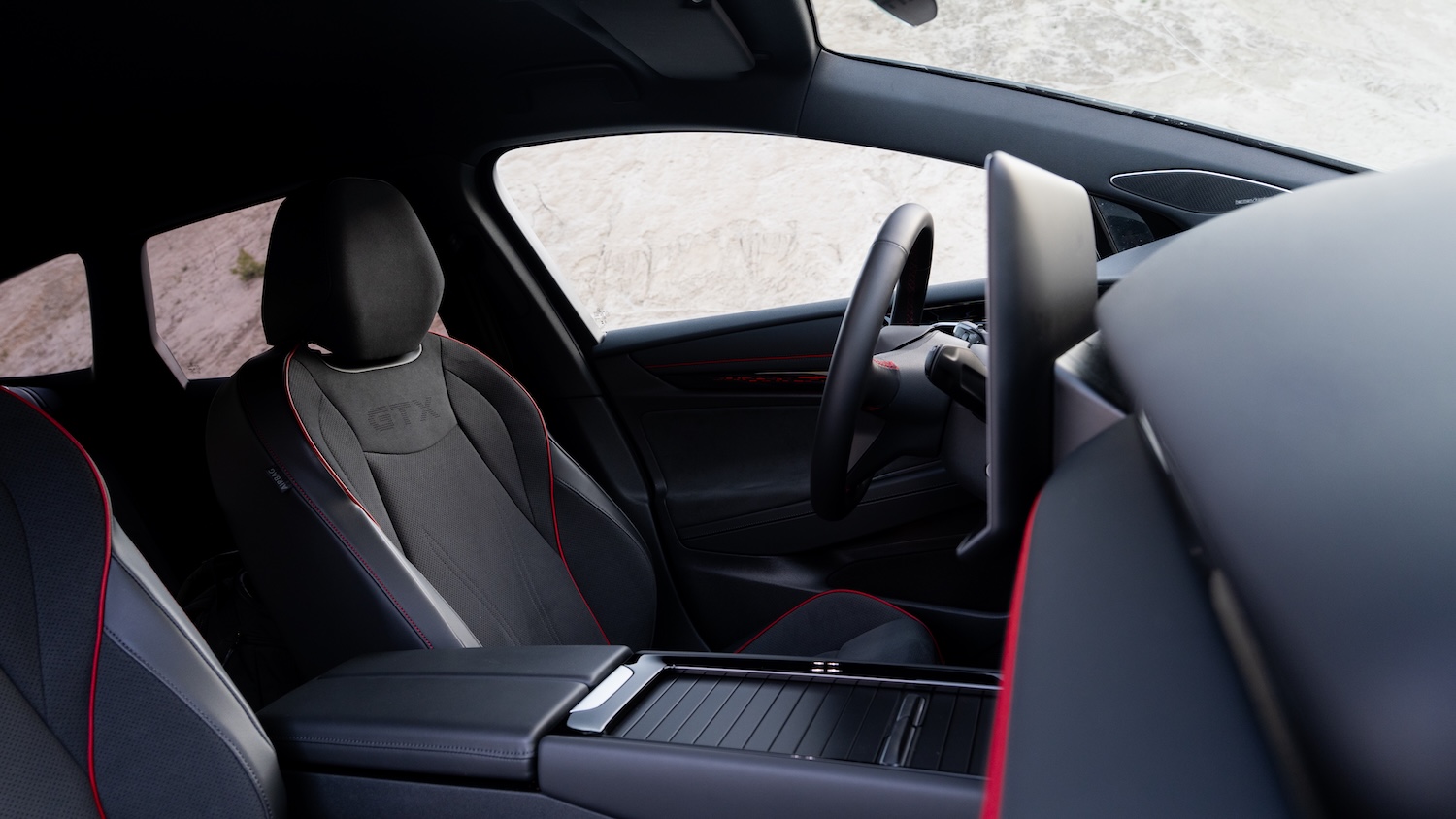 Samostatnou kapitolou sú sedadlá. Sú mimoriadne komfortné, elektricky nastaviteľné a okrem vyhrievania ponúkajú aj ventiláciu a až 11 masážnych programov. Celkovú atmosféru interiéru navyše dotvárajú červené kontrastné prvky typické pre verziu GTX. Vzadu sa nedeje nič prekvapivé, no v tom najlepšom zmysle slova. Miesta je tu dostatok aj pre vyšších pasažierov a cestovanie je pohodlné presne tak, ako by ste od elektrickej vlajkovej lode očakávali. Rodinné zameranie potvrdzuje aj batožinový priestor s objemom 605 litrov. Po sklopení zadných sedadiel, ktoré sa delia v pomere 60:40, vznikne priestor s objemom až 1714 litrov, takže bez problémov poslúži aj pri väčšom nákupe nábytku či sťahovaní. Testovaný kus navyše disponoval aj ťažným zariadením.